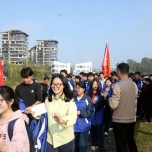 在“田园贴初心站”打卡环节,全体学子齐声高喊:“脚步不停,梦想必达,青春无悔,奋斗有我!”铿锵誓言响彻校园,激荡人心。