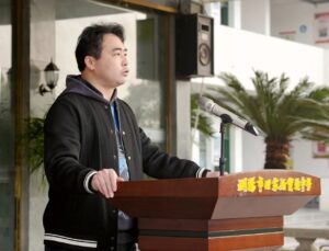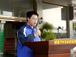 2301班学生代表谢林峰上台发言,表达了学子们迎难而上、逐梦前行的坚定信念与昂扬斗志。