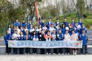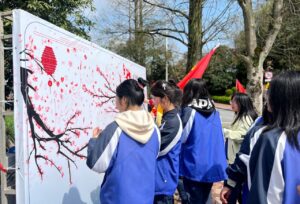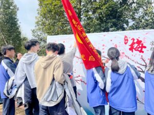 第二站:齐诵《少年中国说》。以班级为单位,同学们齐声诵读“故今日之责任,不在他人,而在我少年。少年强则国强,少年智则国智……”铿锵有力的诵读声在湖畔回荡,爱国情怀与青春担当在此刻深深烙印在心中。各班还组织了合影留念,定格下这珍贵的瞬间。